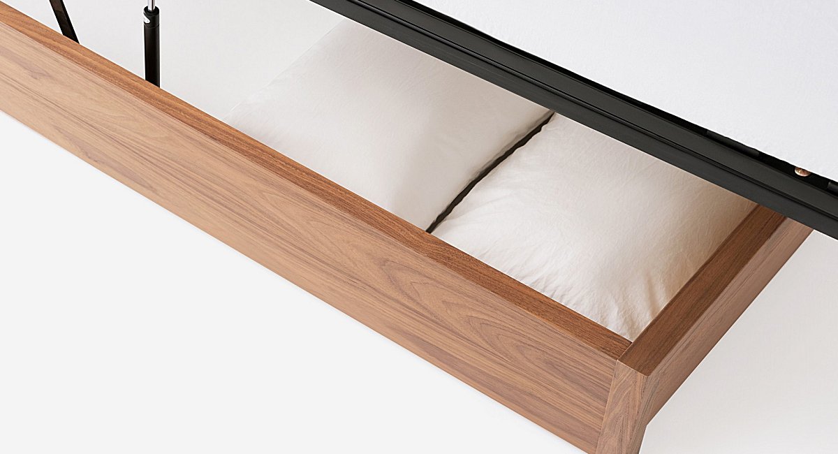 The Marcel Lift Bed by EQ3, the perfect combination of style and function. This striking bed from EQ3 Furniture features a lift mechanism that allows you to raise the bed and uncover the discreet storage space underneath. Available in Walnut or Oak finish.