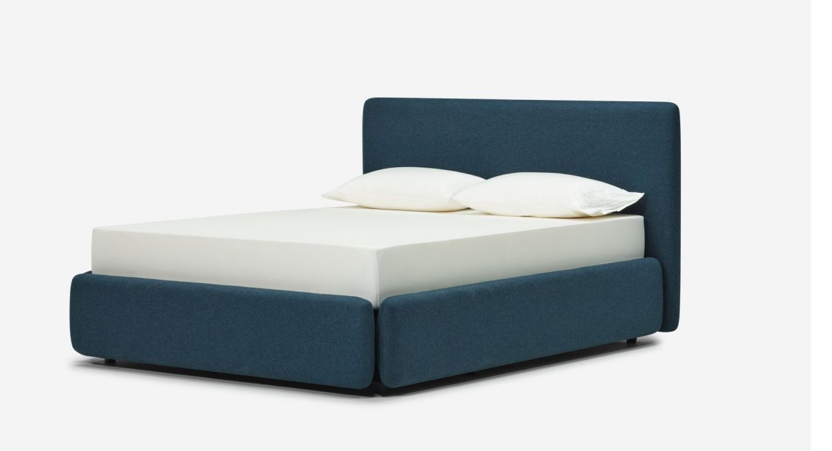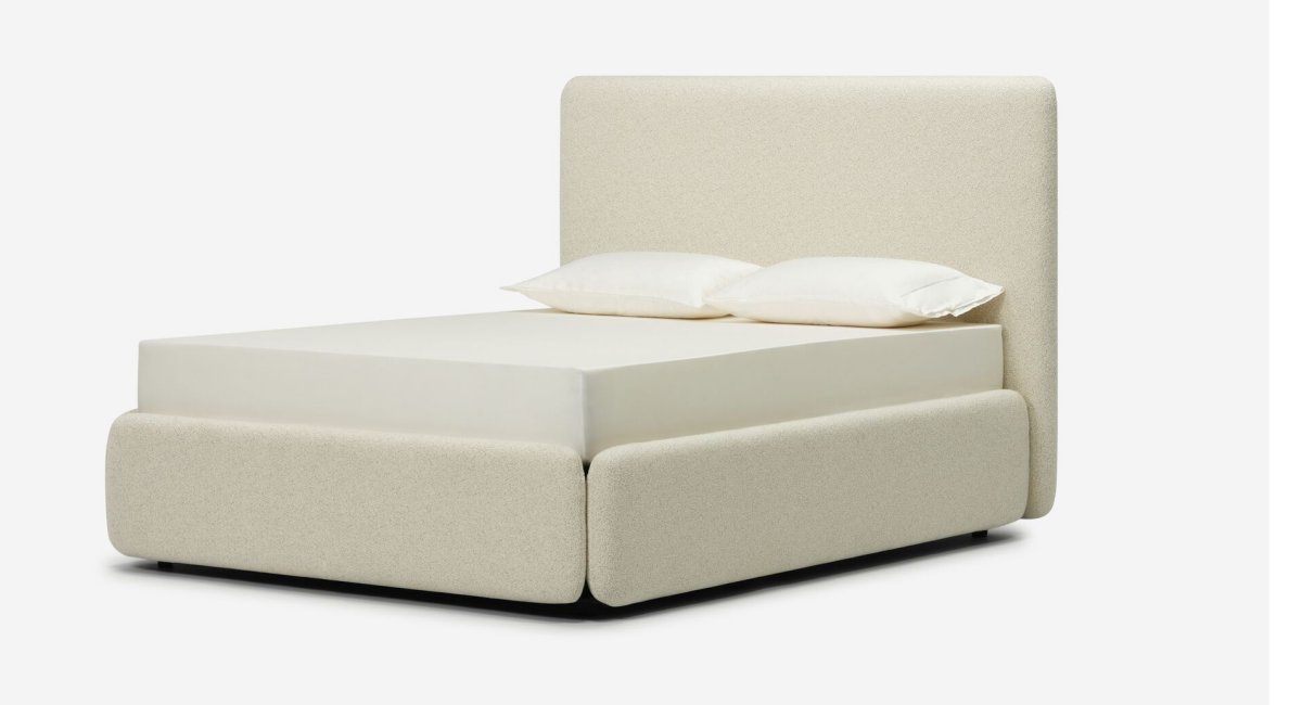 The EQ3 Orri Bed. Customize it to fit your unique needs with two headboard height options—Low (41.5") for a minimalist vibe or High (50.5") for a statement look. Available in Double, Queen, or King size. Choose from over 200 fabric and leather options to match your personal style and create a bed that’s uniquely yours.