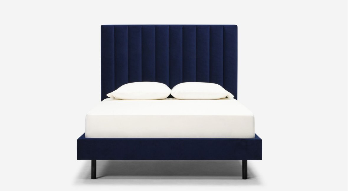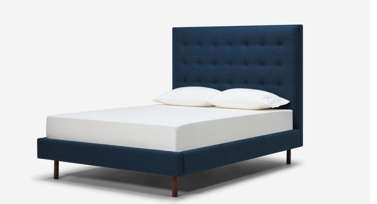 Select from a collection of premium fabrics and choose between rich walnut or sleek black wooden legs to create a piece that perfectly matches your aesthetic. Available in sizes from Twin to King, the Nara is designed to fit beautifully into any bedroom space.