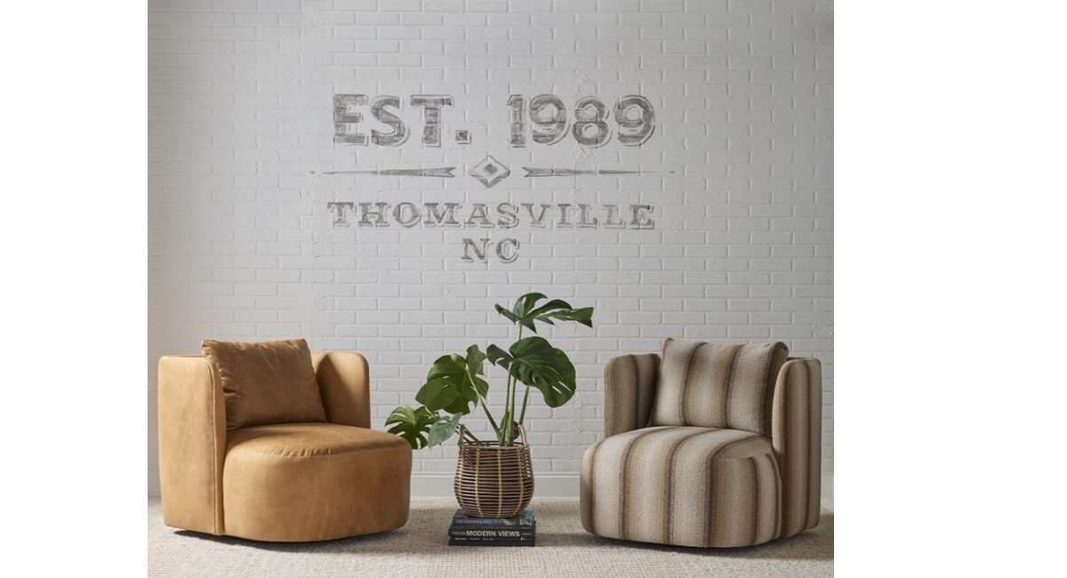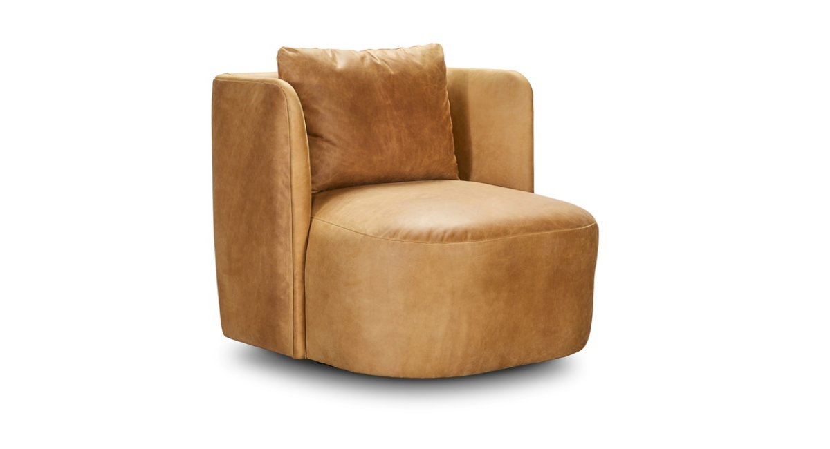 The Younger Furniture Floyd Swivel Chair. With its elegant lines and inviting silhouette, this carefully crafted piece brings warmth and beauty to your living space. The Floyd Swivel Chair is fully customizable, offering hundreds of premium fabrics and leathers to choose from.