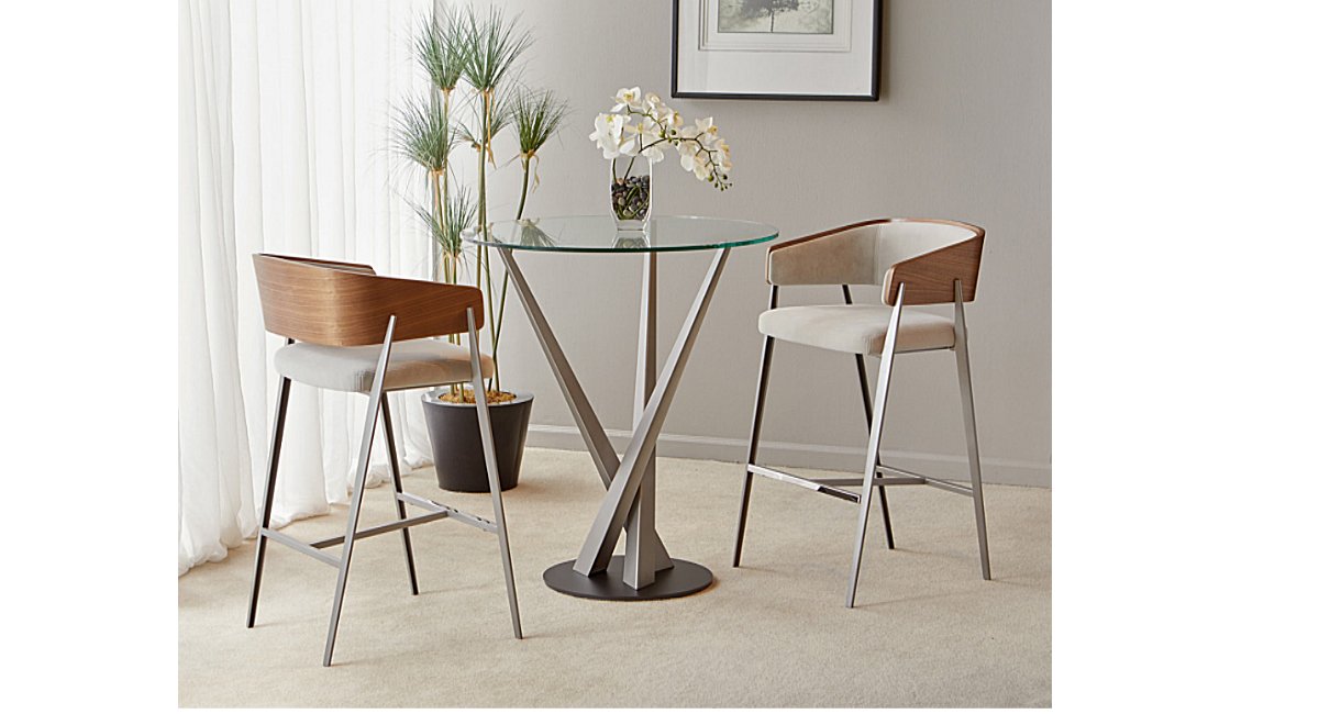 The Elite Modern Aria Dining Chair from Elite Modern Furniture! This gorgeous chair is perfect for any dining room or kitchen, with its sleek design and gorgeous finishes. The Aria is crafted with a splayed steel leg design and an oversized wraparound back, which is upholstered in a plush fabric. The Aria is also available in a counter and bar stool.