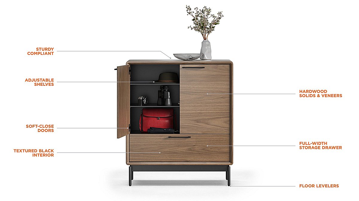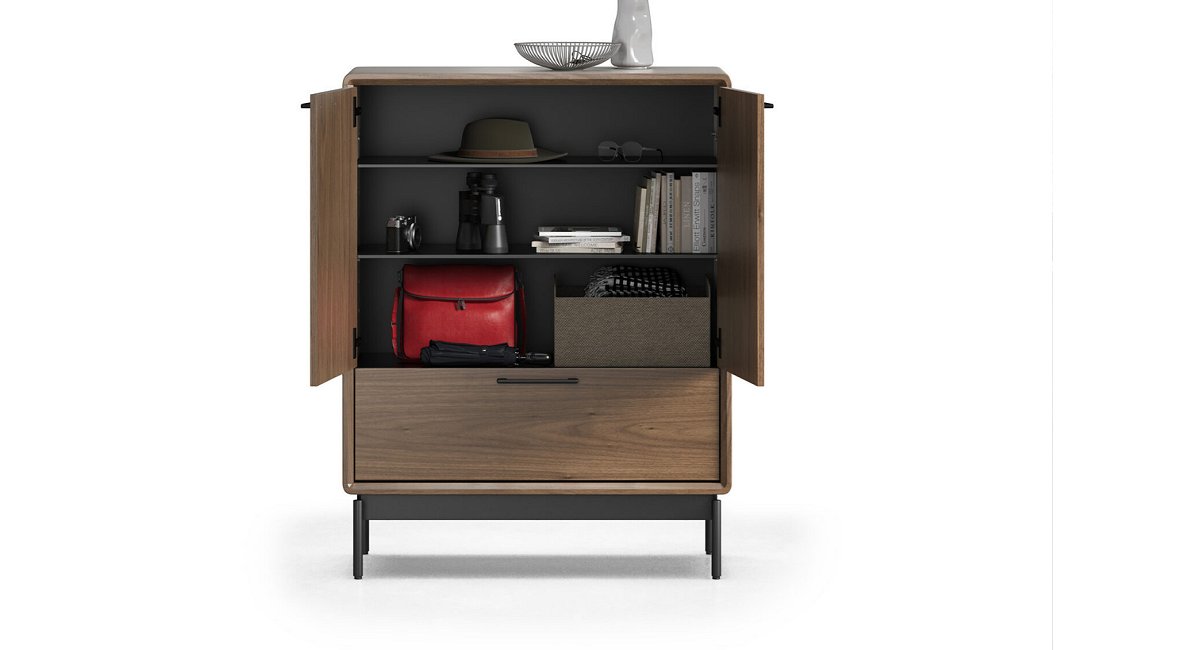 The BDI 7585 LINQ Media + Storage Cabinet. This thoughtfully designed piece seamlessly blends modern sophistication with practical functionality, offering you the perfect solution for those areas that need a touch of order without sacrificing style. Whether positioned in your entryway to corral keys, mail, and daily essentials, or placed in a hallway to house linens and household items, the LINQ Cabinet’s concealed storage keeps your belongings neatly tucked away while maintaining the clean, uncluttered aesthetic you love. As part of the acclaimed LINQ Collection, this versatile cabinet delivers the quality craftsmanship and timeless appeal that will serve your home beautifully for years to come.