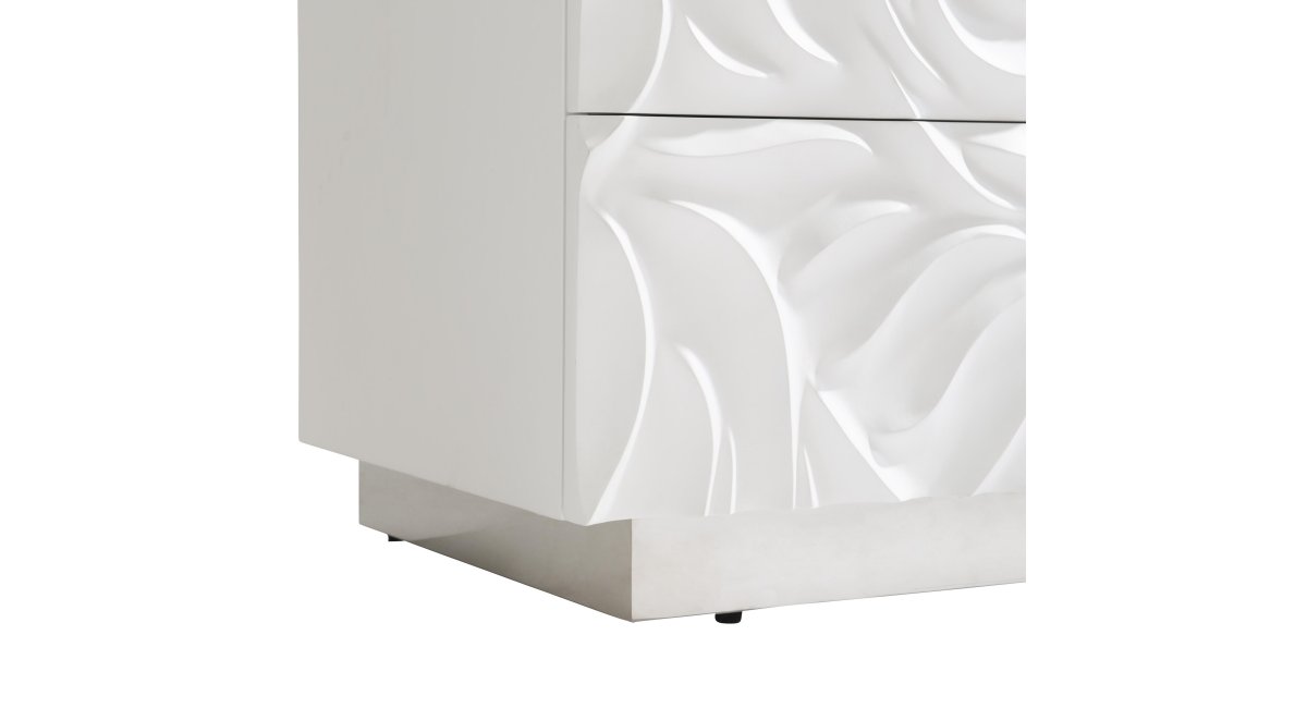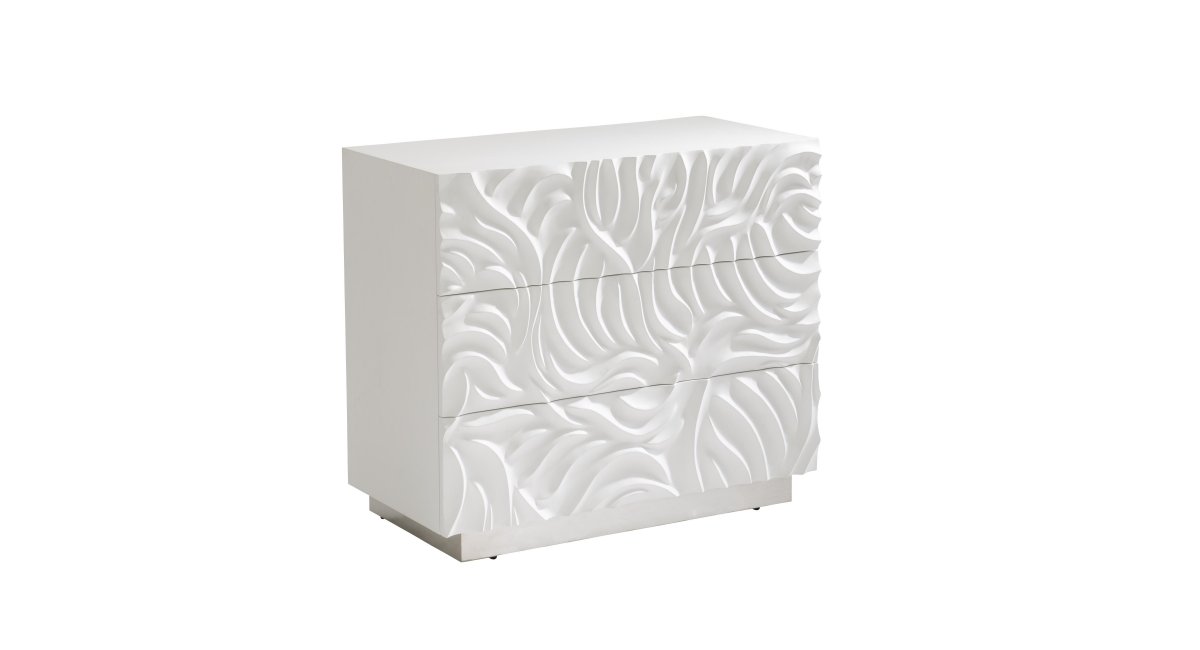 The Bernhardt Alia Nightstand brings both artistry and functionality to your bedroom retreat. Its intricately carved drawer fronts add a sense of texture and movement, creating a visual statement that feels sophisticated yet approachable.