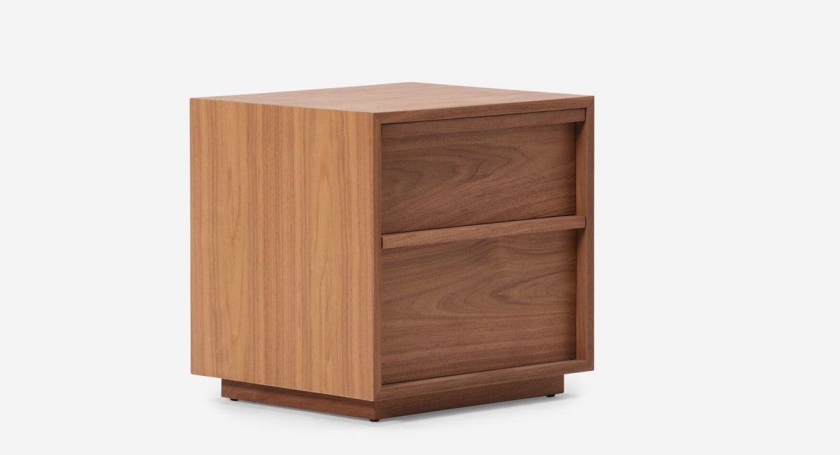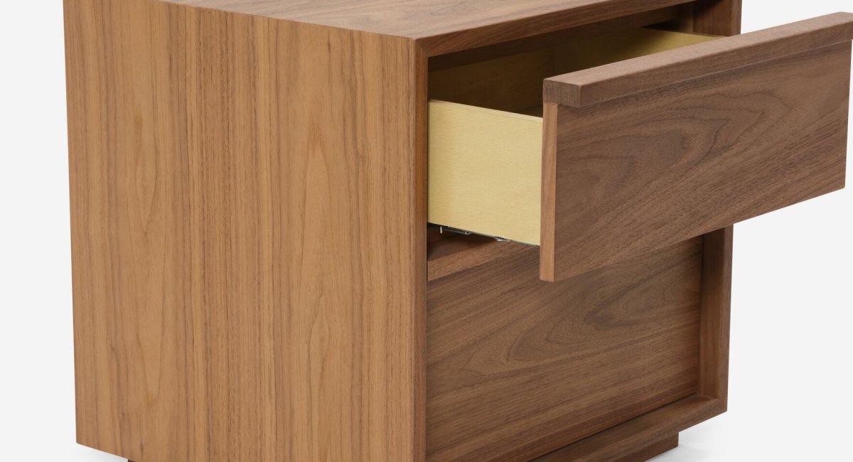 The EQ3 Stage Nightstand. Expertly crafted from solid wood and rich walnut veneer, this piece reflects a commitment to superior materials and timeless design. The clean lines and minimalist aesthetic allow the nightstand to blend seamlessly with your personal style, while the environmentally friendly water-based finish ensures a safe and beautiful addition to your home.