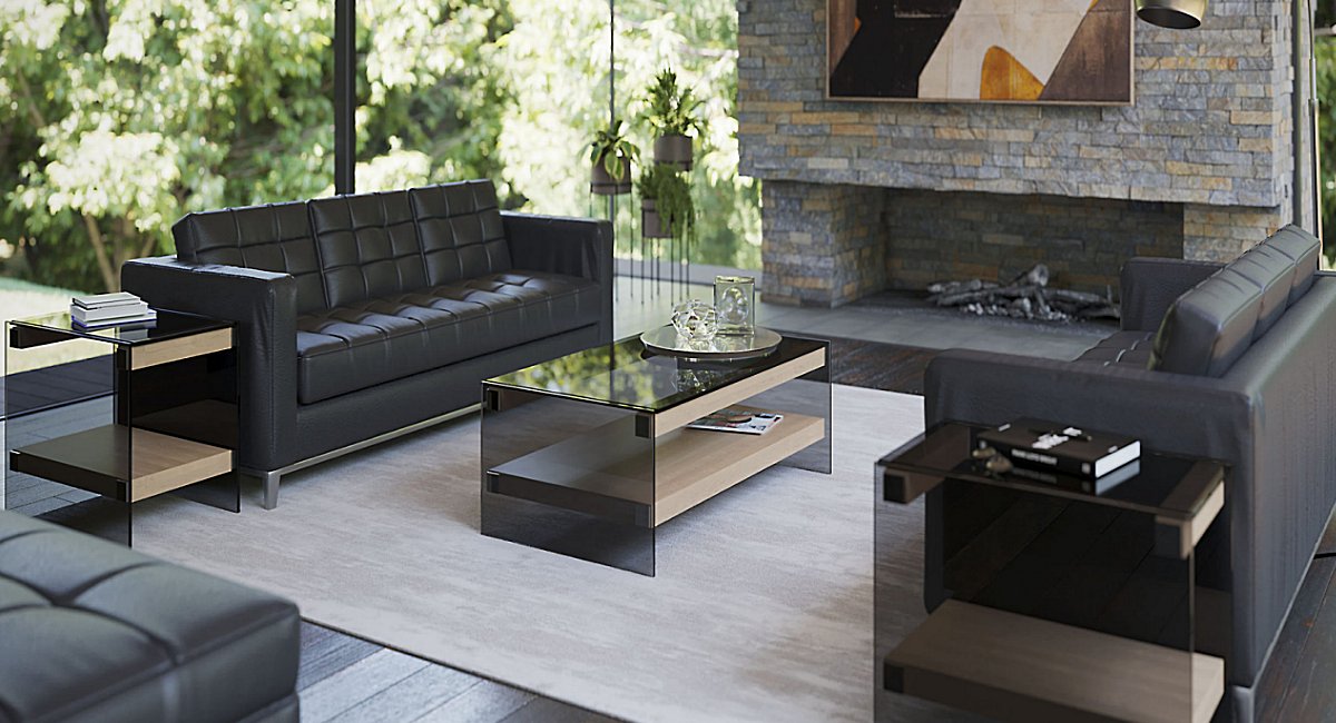 The Canadel 2850 Fiction Coffee Table. Cutting-edge and sophisticated, the Fiction coffee table is perfect for urban style enthusiasts. With its spectacular tinted glass top and sides, it is sure to be the center of attraction. Also available in a square version. End Table is also in the collection.