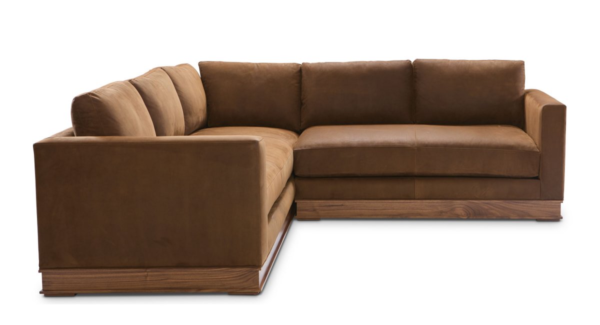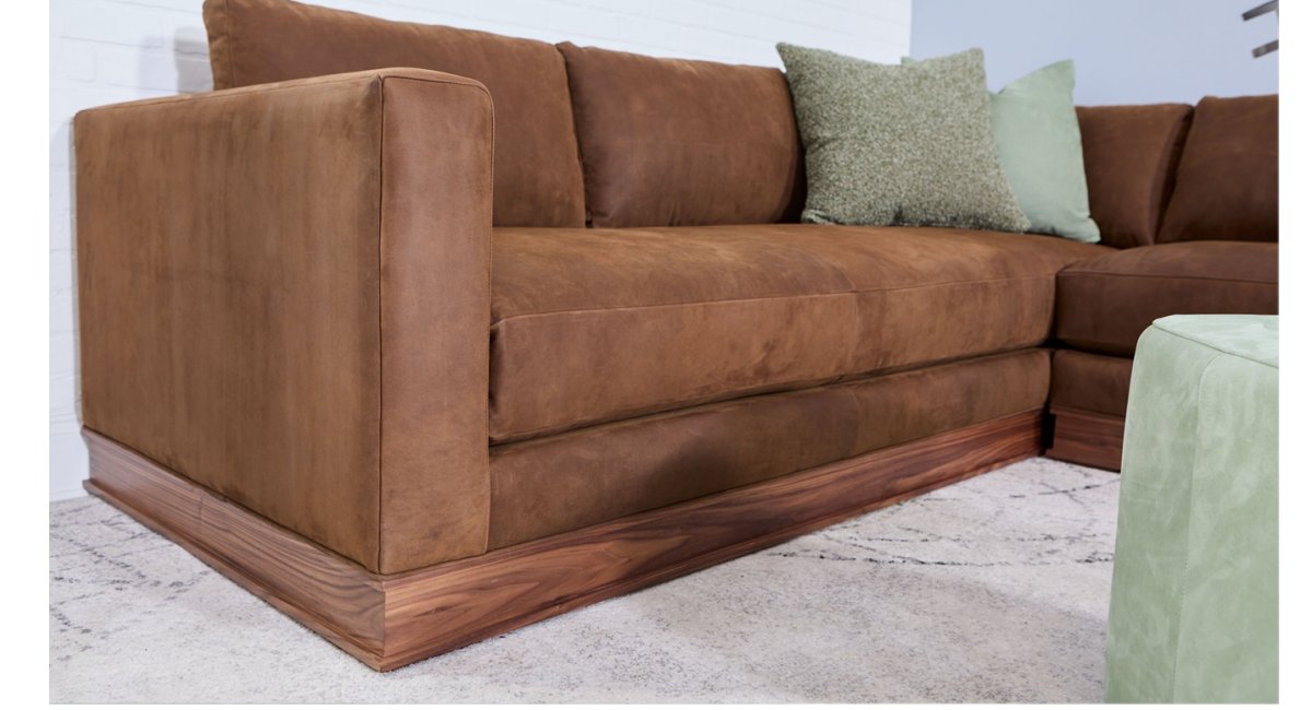 The Younger Base Sectional. True to its name, this piece provides a solid, sturdy foundation for your home, blending reliability with exceptional comfort. The design features a distinctive exposed wood base that adds a touch of natural warmth to the clean, modern lines of the upholstery, resulting in a sophisticated look without being overly complex.