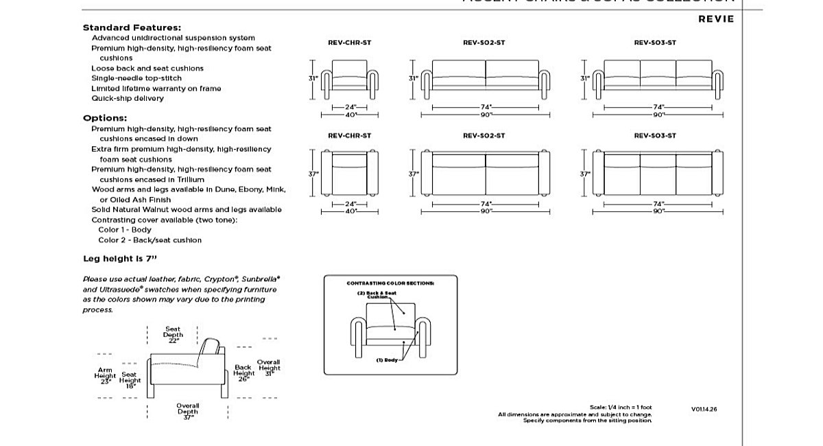 Wood arms and legs available in Dune, Ebony, Mink, or Oiled Ash Finish. Solid Natural Walnut wood arms and legs available.