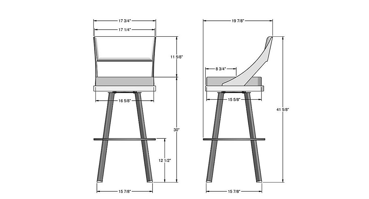 Bar. 41 1/2" x 17 3/4"W x 19 3/4"D Seat Height. 30"
