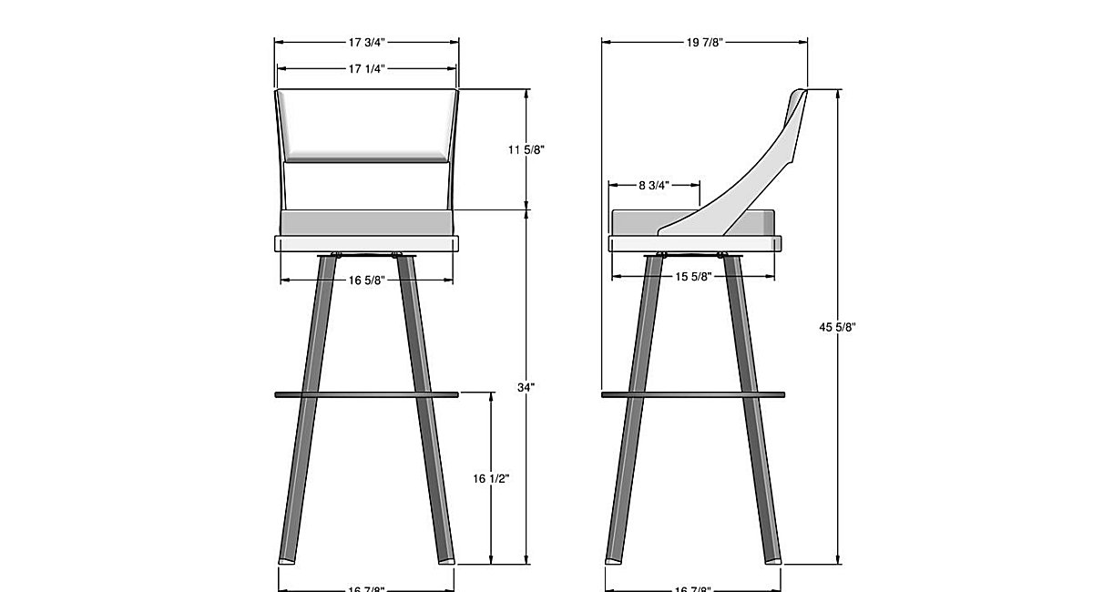 Spectator. 45 1/2"H x 17 3/4"W x 19 3/4"D Seat Height. 34"
