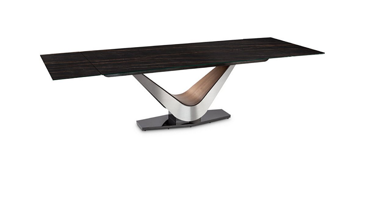 The Elite Modern Victor Dining Extension Table is a show-stopping piece that will elevate any dining space. The Victors new extension mechanism provides smooth travel and exceptional rigidity, with none of the shakiness or noise of other extension tables. For a truly stunning effect, you can choose from two Italian ceramic tops: Nero in a gloss finish, or Blanco in a luscious matte finish.