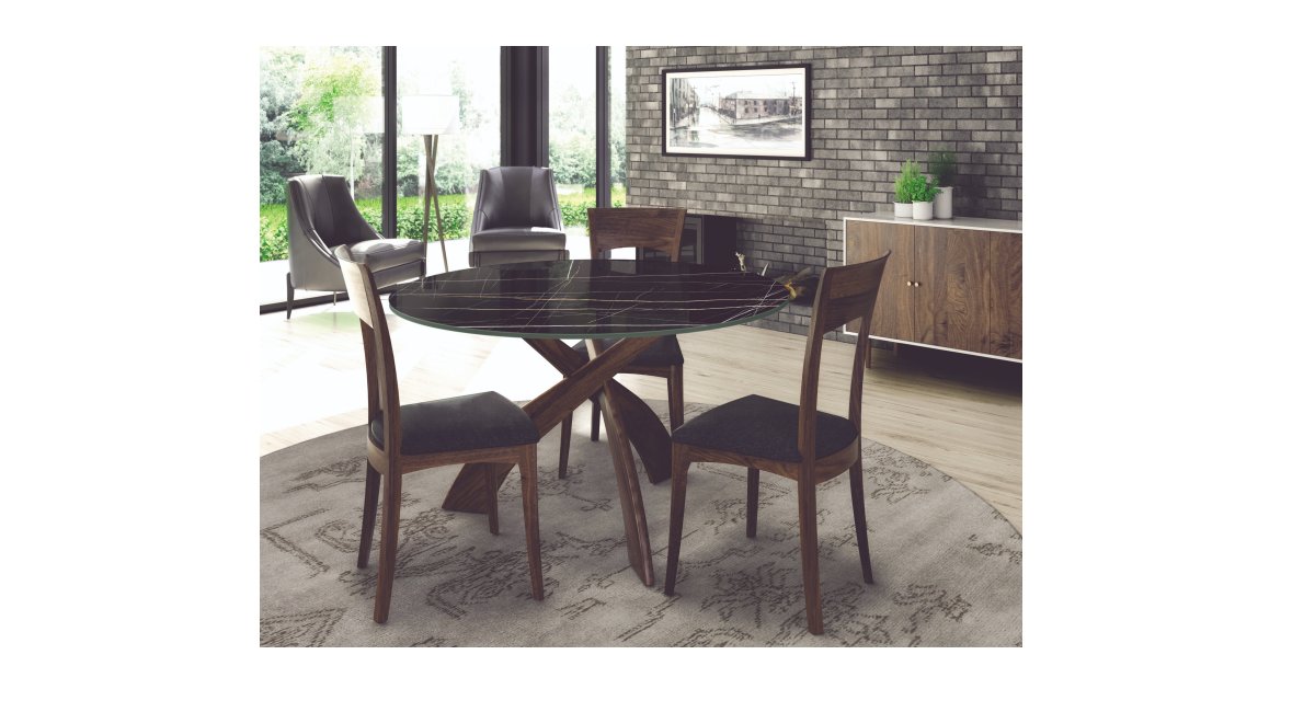 The Copeland Entwine Cherry Dining Table. This stunning table is sure to be the focal point of any dining room. The base is crafted from solid cherry hardwood The clear tempered 15 mm glass top is perfect for showing off your favorite dinnerware. The base is also available in solid walnut in a natural finish. Available in three sizes and a glass or Sintered top.