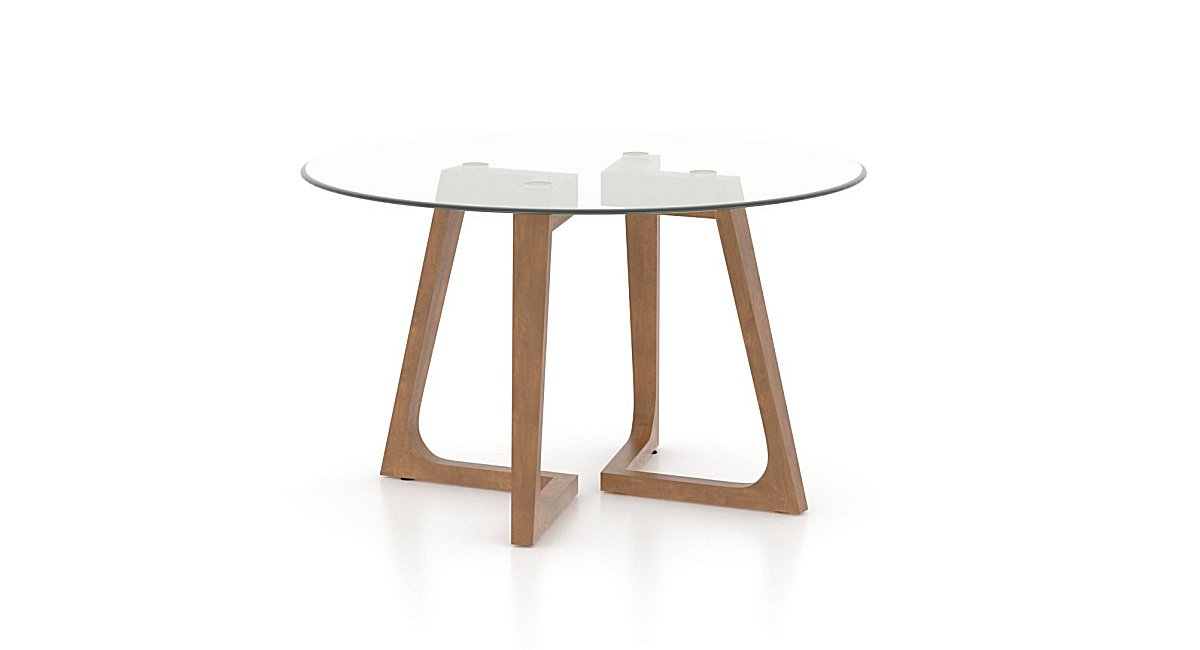The Canadel Modern Round Dining Table shown with a porcelain top. A glass top is also available.