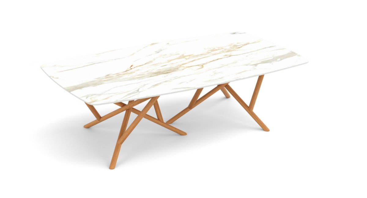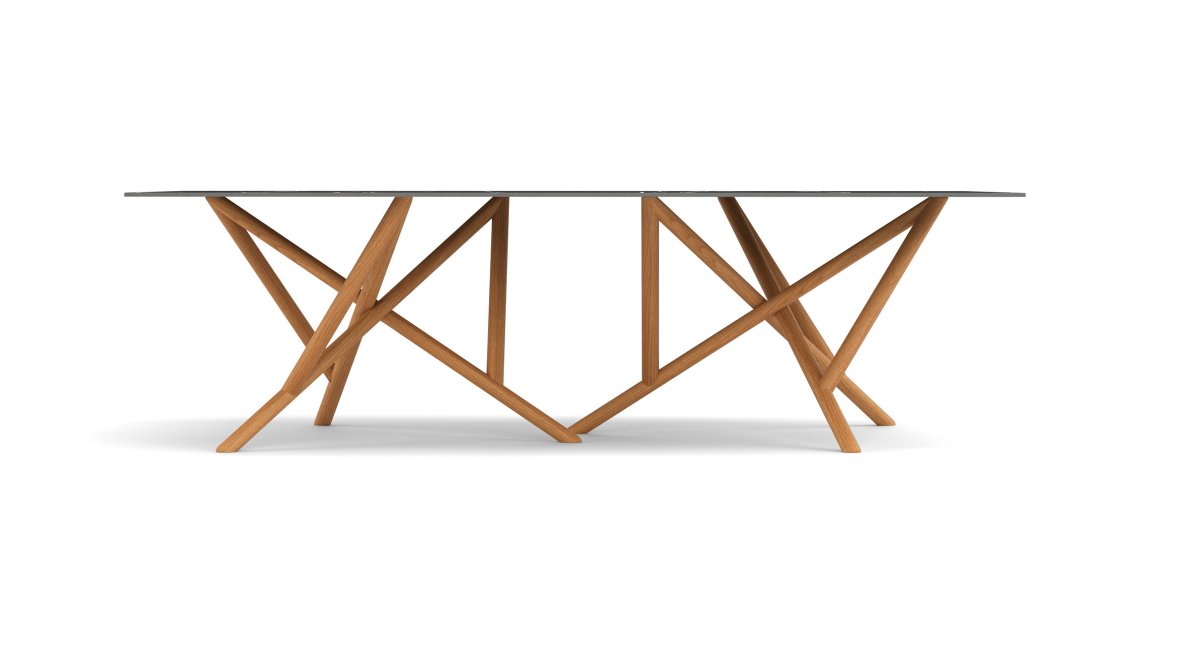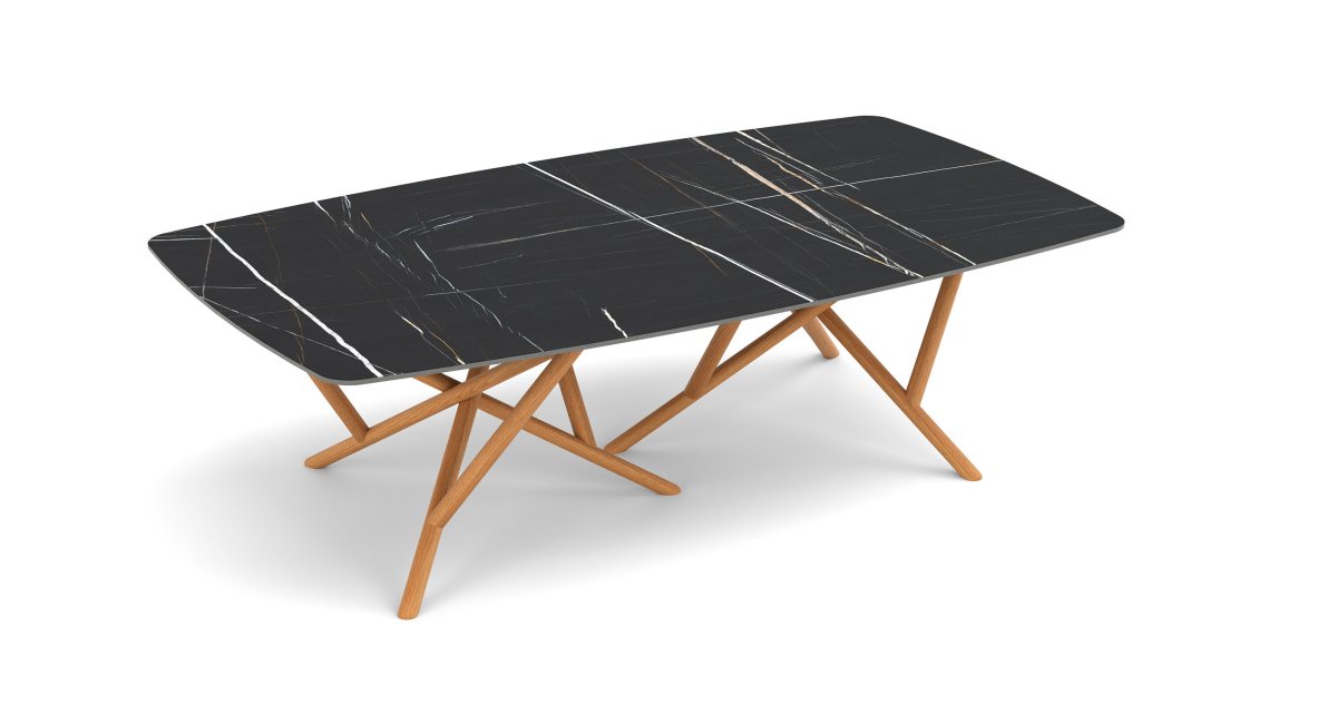 The Copeland Baton Sintered Stone Top Table. Inspired by the graceful, endless flow of the infinity symbol, the Baton table is a study in modern elegance. It is composed of identical segments, each resting on the next, to create impressive rigidity within a delicate aesthetic. When assembled, Baton’s innovative base forms a seamless ring of support with no clear beginning or end.